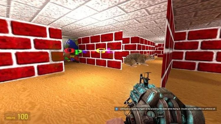 当然如果你选择与其他玩家从中对战的话,想必又是另一番乐趣。(想体验这个MOD的朋友可以在Garry's Mod的创意工坊页面搜索“Windows 95 3D Maze Screensaver Map gm_3d_maze_v2”)