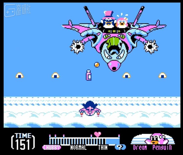 64合1里的《南极大冒险》,可能是很多人接触的第一个跑酷游戏。像加分道具、能力道具、障碍物这些跑酷游戏的标准设计,在这个80年代的游戏里已经都具备了。特别是那首著名的溜冰圆舞曲,给很多朋友留下了深刻的印象。