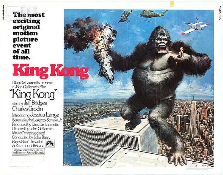 原来这举世皆知的大猩猩金刚的版权,多少年来就是一笔说不清道不明的烂帐。电影版《金刚》最初在1933年上映,版权归制片厂雷电华和导演库珀共有,库珀本人算是这个角色形象的塑造人,但他根本管不着版权的事,日后跟金刚有关的电影层出不穷,也多与库珀和雷电华无关。到了1976年,有人向雷电华交了20万美元的版权金,重拍了这部经典怪兽片。