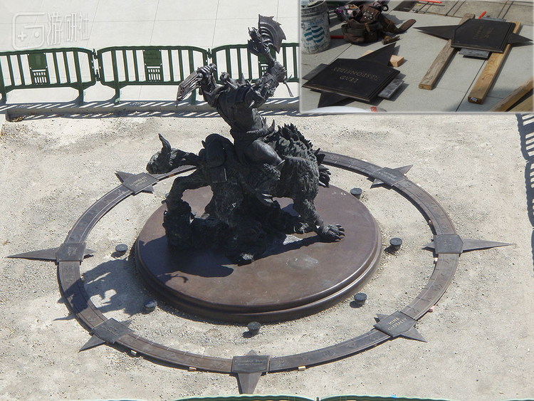 在雕像底座的四周,有八个罗盘形状的指示标,这代表了“暴雪的八大核心价值观”。