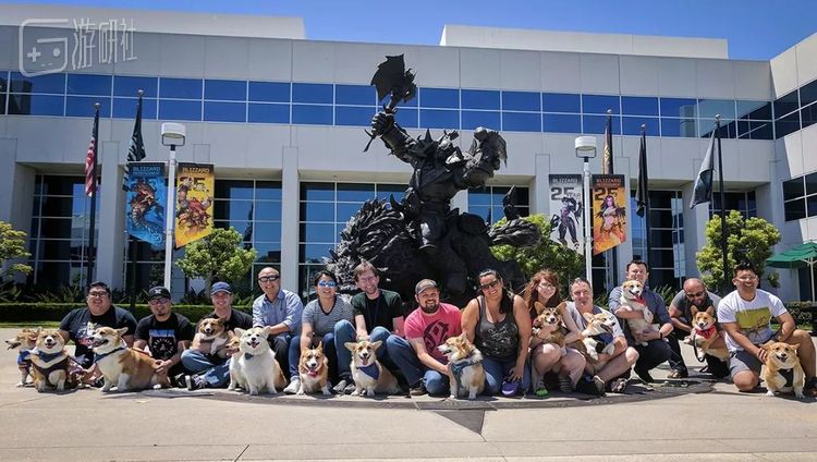 暴雪一直都有鼓励员工带宠物上班的传统,在“柯基节”这天,兽人狼骑也当仁不让地成为了合影的首选背景