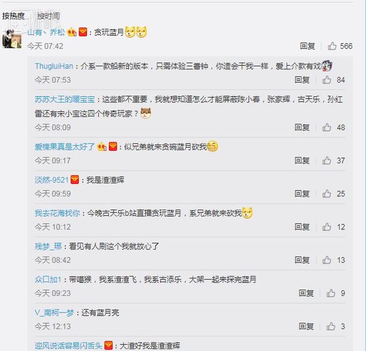 由于这个巧合,《贪玩蓝月》得以在“蓝月亮”等大众品牌还没开始动作的时候,就靠着这个热点刷了一波存在感——在上图央视新闻的这条微博下方,最热门的评论就是关于贪玩蓝月的玩梗桥段: