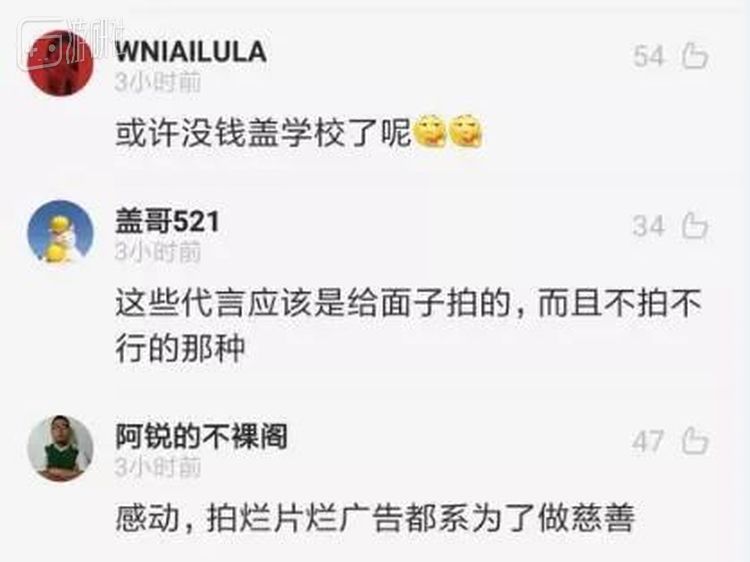而在上面的微博截图里,你可能又会注意到诸如“慈善”“捐学校”之类的说法。比起“古天乐绿了”的页游广告梗,古天乐做的一系列慈善活动,反而很少为人所知。
