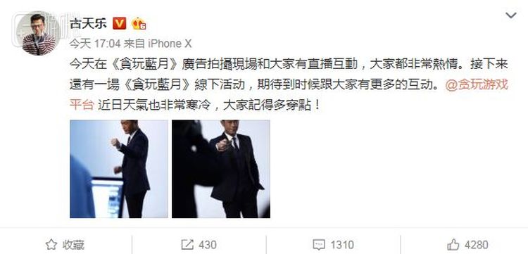 1月30日,贪玩游戏发布了一个预热视频,宣布《贪玩蓝月》的代言人古天乐将于31日(也就是今天),上午10点在哔哩哔哩直播。