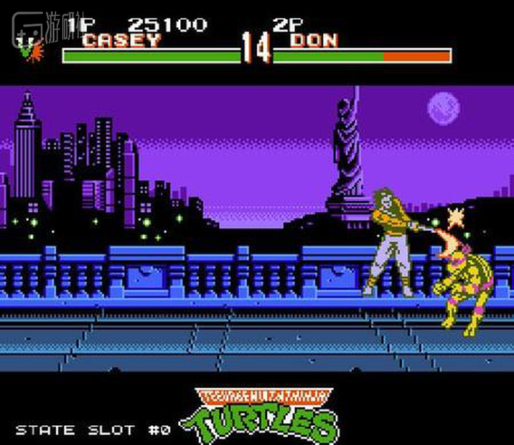 初玩《超级马里奥》、《魂斗罗》都让我神魂颠倒。在我眼中,黄色游戏卡带是最幸福的颜色。久而久之,我也会暗自攒钱买游戏卡(自然是几块钱的盗版)。但是童年的无知也让我被无数卡带封面给骗了。买了几十张卡带,趟过了500合一的坑,也遇到mini电池没电而丢失的存档。抛去那些最经典的FC游戏,我最痴迷的还是格斗游戏,快节奏、攻守转换让我欲罢不能。可能童年里觉得FC上最让我满意还是《激龟格斗》,Shredder作为BOSS,伤血和便捷施放招式很能吸引新手。