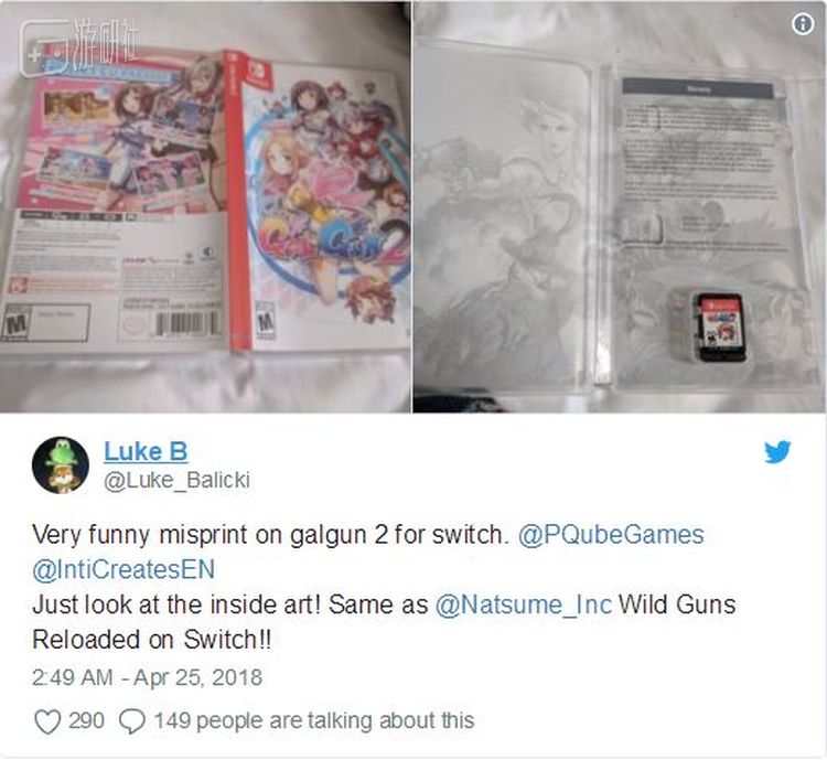 基本上,NS实体版游戏都是由日本厂商先把游戏的卡带制作好,然后在发送到世界各国,并在当地包装好之后进行销售。由于北美版《少女射击2》和《WILD GUNS Reloaded》这两款游戏的发售日前后只隔了一周左右的时间,很有可能是印刷厂在印刷封面的时候出了差错吧。