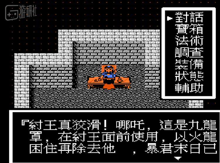 遍观如今的国产游戏,大多都是古风仙侠题材。在其中,更有国产三剑坐镇。只是,内容无非就是爱恨情仇,而关键的神仙,则更偏向于剑仙一点。运用多种法宝,排山倒海破阵的仙人,倒是少之又少。而在封神榜之中,仙人们有些居住在仙山、有些居住在孤岛、更有些在云朵之中,符合仙的定义。而每次游戏中一些法宝的妙用,比如夜明珠、避水珠、降魔杵、九龙罩等等,都将这些法宝的特性在FC时代就展现给了世人,也将法宝与游戏高度融合在了一起。(当然特殊物品开启战斗不是封神榜的原创)而有些关键对话,更是指引你去夺宝寻物的重点(虽然我爬了这么久的山就告诉我这句没用的东西)