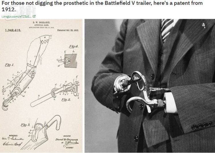 最让人感到违和的,肯定是女兵身上的义肢了。擅长考据的网友马上发现,预告片里的这个义肢发明于1912年。到了二战时期,这早就算不得什么新鲜事物了,但这东西确实较为稀有,你不太可能在战场上见到它。