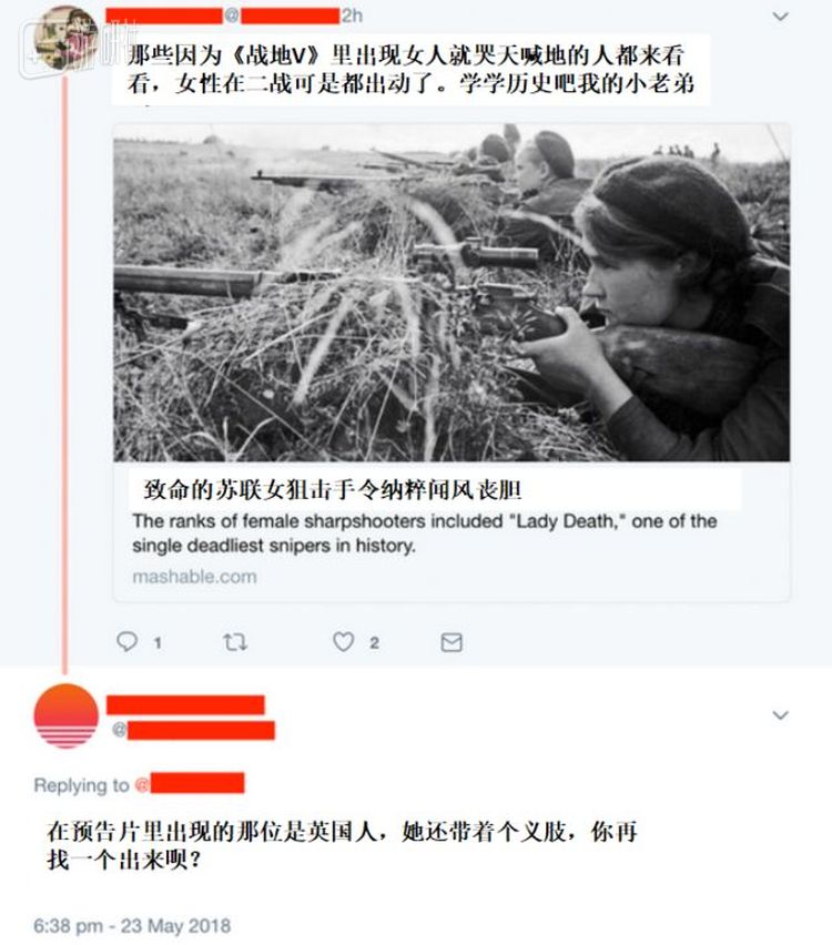 而这些吐槽自然也引起了另一些人的不满。他们认为《战地V》在还原历史上没什么问题,完全是这些KY的人自己矫情。但以目前的战况来看,好像还是持批评态度的人占了上风。