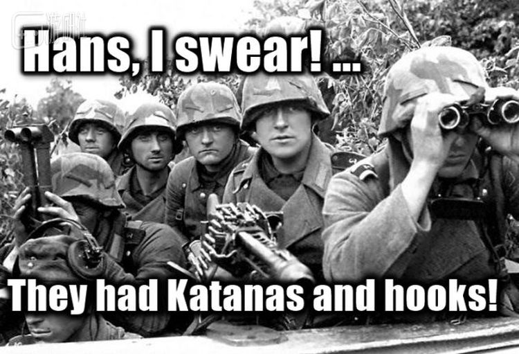 “汉斯,我发誓!他们带着日本刀和铁钩!”