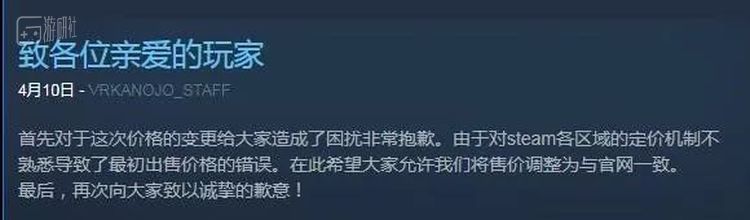 首先发售后第二天涨价这个事情,纯粹是对平台不了解和紧张导致的疏忽,请中国玩家们接受我们诚恳的道歉。我们今后都想和中国玩家好好的搞好关系,绝对没有欺骗或者刻意的涨价的打算。