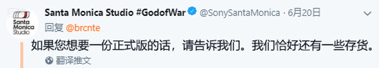 戏剧性的是,制作“战神”系列的圣莫尼卡工作室也留意到了这条推文,他们在转发的同时表示: