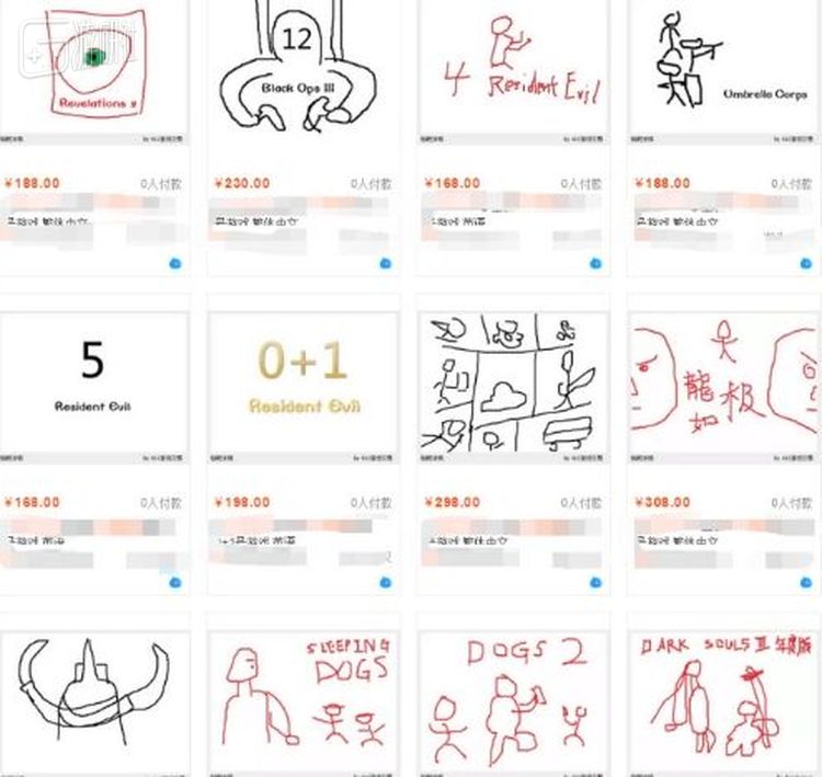 所以就出现了很多玩家熟悉的别称:“三男一狗”“大菠萝”“男朋友4”等等,有些看起来似乎单纯是为了搞笑,但其实是为了规避电商限制。更有艺高人胆大的,直接用“灵魂作画”,比如下面这张流传很广的淘宝商品封面合集……