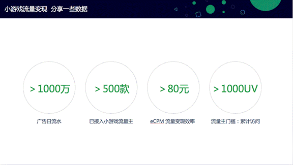 昨天,小程序(含小游戏类目)广告组件已全量开放,累计独立访问用户(UV)不低于1000且无严重违规记录的小游戏都可以在小程序后台自助申请开通广告位。测试期间,已有累计500多款小游戏流量主接入,日流水消耗达到千万级别,每千次展示获得广告收入大于80元。