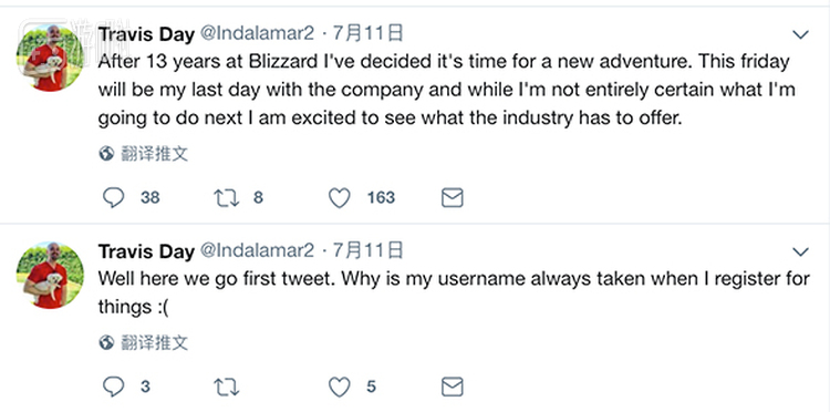 7月11日,暴雪《暗黑破坏神3》开发组的高级设计师Travis Day开通了推特账号,随后就发布了自己即将离开暴雪的消息。