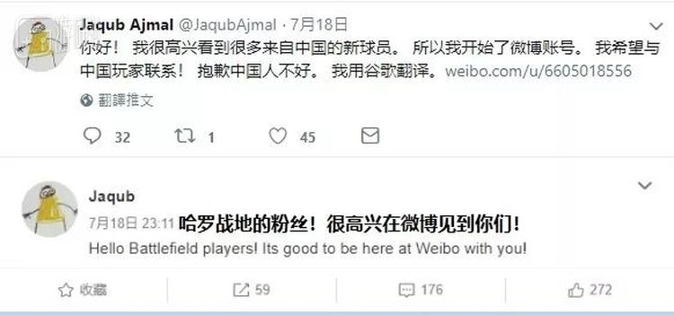 在中国朋友的帮助下,《战地V》的制作人Jaqub Ajmal前两天开通了新浪微博。这位制作人此前是DICE的QA(游戏测试)经理,不过很少在媒体上露面,所以认识他的人并不多。