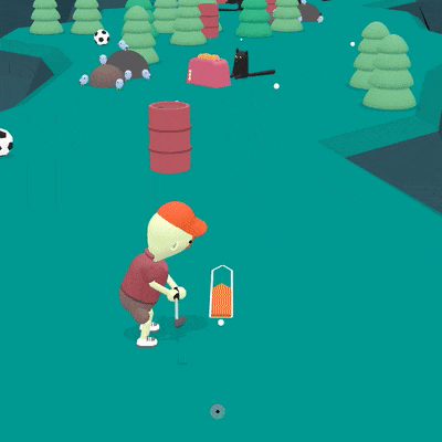 在这款游戏里,高尔夫球基本上不是主角,他们觉得高尔夫球杆,甚至挥杆的人也能当高尔夫球来打,或者干脆用高尔夫球的视角来“重制”各种体育活动,甚至各种游戏……还有许多奇奇怪怪的设定,你看这几张gif图就懂了。