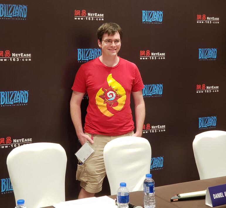 在ChinaJoy期间,我们参与了对《炉石传说》游戏设计师Daniel Emmons的采访。2015年8月,Daniel以游戏设计师的身份加入《炉石传说》开发团队,负责扩展包设计与系统设计。在此之前,Daniel曾是万智牌的游戏设计师,也从事过其他桌面游戏的设计工作。作为《炉石传说》开发团队的一名游戏设计师,Daniel Emmons还是线上内容设计组的成员,参与了乱斗模式、各项游戏内活动及炉边聚会的开发。