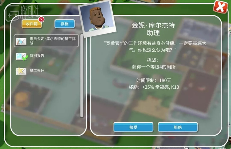 时不时地,员工们也会向你提出一些挑战,这些挑战往往伴随丰厚的奖励,但同样也有不小的风险,例如一口气接纳若干名病人,如果这种疾病恰好治愈率不高,最后很可能你不仅得不到奖励,医院的声誉也因此遭受损失。