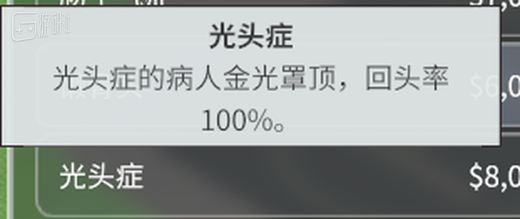 虽然《双点医院》暂时没有那种“一本正经字正腔圆”的中文“客服广播”。但是依然有英文播音腔的正儿八经的吐槽,比如“Attention,did anyone see my pen?(请注意,有人看见了我的笔吗)”。而且本地化上,依然有十足的亮点。例如,游戏中有两种疾病,一种是病患的头变成一个一直发光的灯泡,这种病叫做: