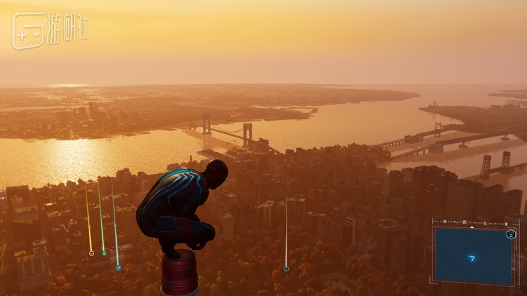 A:既然都已经会飞檐走壁了,还要载具做什么!当然摆荡系统是《漫威蜘蛛侠》里最重要的系统之一,从体验上来说非常不错,操作也非常简单,跳起之后按R2就可以自动进入摆荡状态,而不用再去手动选择定位点,按X键则可以实现跳跃,加速等辅助动作。在地面上按R2则进入跑酷状态,可以加速在垂直墙面上奔跑。