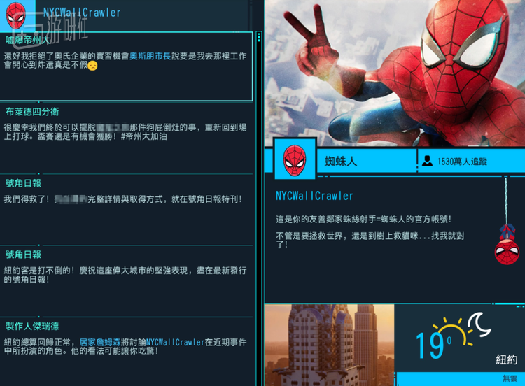 限于剧透的考虑,我不能对剧情做更详细的介绍,在已知可操控彼得·帕克和玛丽·简的基础上,游戏还将有第三位可以操控的角色,虽然后两者无法想小蜘蛛一样擅长战斗,但是他们也会用其特殊的能力帮助蜘蛛侠,并不乏相互配合的桥段,从叙事上来讲,三条线将从不同的视角来描述整个故事,“能力越大,责任越大”,但对于没有特殊能力的普通人来说,如何找到自己的定位同样重要。