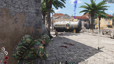 当然,除了在生存体验上的高度拟真,《人渣》在游戏其他方面的设计也是别出心裁。在《武装突袭》《绝地求生》等可自由切换第一人称和第三人称视角的射击游戏中,不少玩家会在战斗中躲在掩体后,用第三人称视角观察敌人动向以取得战术优势。这种行为一般被中文玩家称为“卡视角”。在相关游戏的社区中,“卡视角”是否破坏游戏平衡也经常是玩家争论的热点。