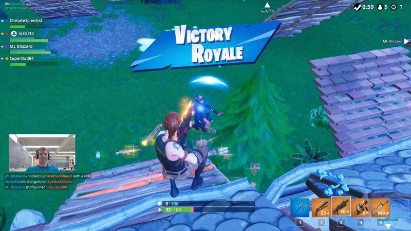 于是他在推特上广发英雄帖,想要找到三位同样感兴趣的气候科学家一起搞个气候科学主题的《堡垒之夜》直播。为了扩大候选人群体的规模,他还特别注明“菜鸟也可以”,看来放宽标准确实很有成效,没过多久就有二十多位感兴趣的气候科学家和科普工作者前来应征,和德雷克一起组成了“《堡垒之夜》气候小队(Climate Fortnite Squad)”。