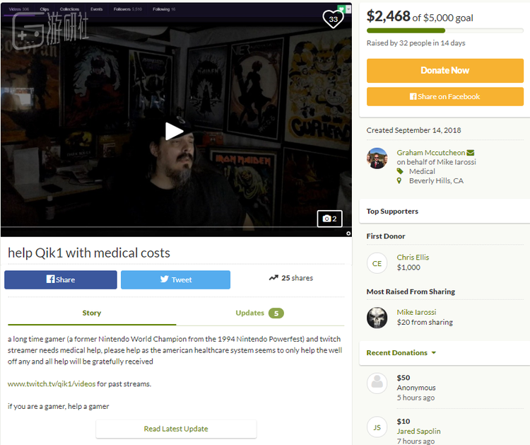 在接受外媒Polygon的采访时,拉洛希回忆起当时的情况:中断游戏后直播间的观众看出来他情况不对劲,一个名叫Graham的玩家马上发消息说:“听着,我现在就去GoFundMe(一个众筹网站)给你发起众筹”,另一个人也跟帖评论“你现在只管马上去看病就好,我们会帮你解决其余的所有问题。”
