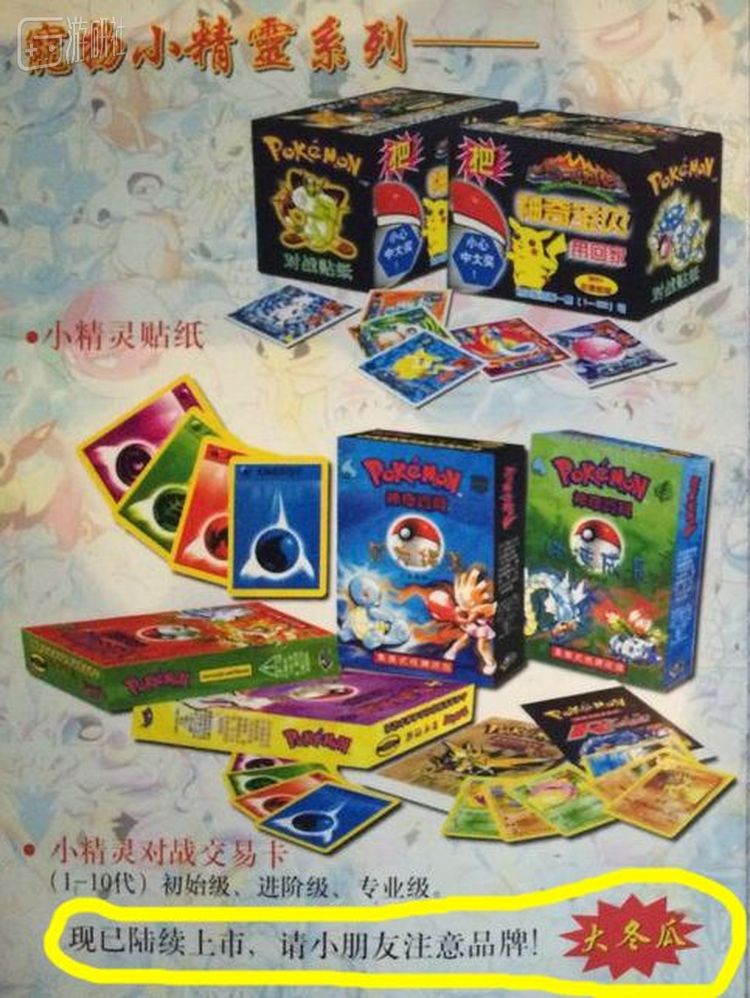 在中国这片市场上,宝可梦贴纸最主要的推手是一个叫做“大冬瓜”的品牌,他们推出的两批最知名的产品一个是“神奇宝贝贴纸第一集”,另一个是 “神奇宝贝贴纸第三代”。因为地域差异这两批商品这两批商品的流行程度和上架的时间先后都有一定的差异。