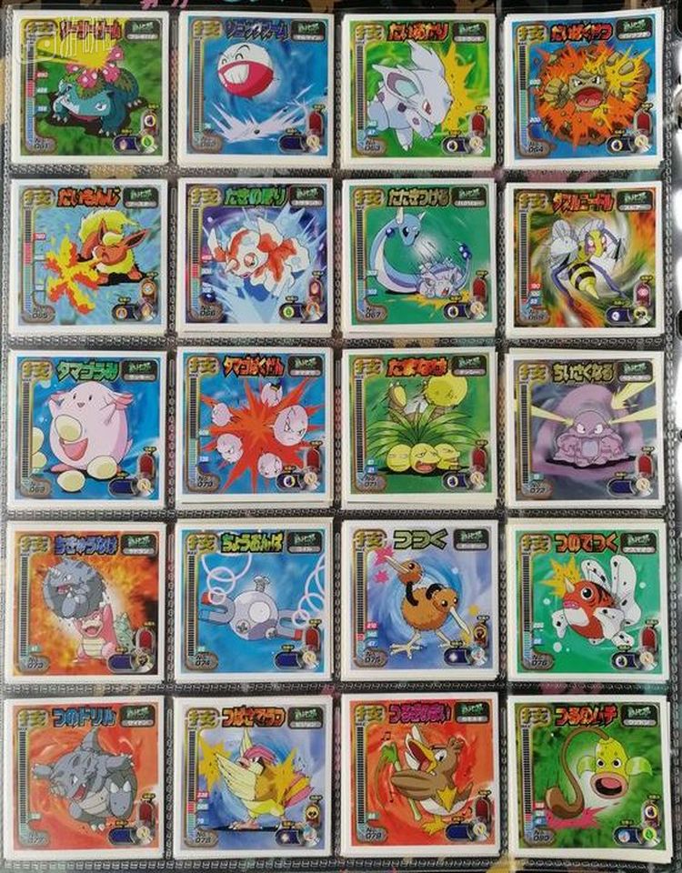 1996年,在宝可梦系列初代“红绿”刚发布的同一年,日本小卖部的大供应商之一天田印刷感受到了宝可梦不可挡的势头,推出了“宝可梦最强贴纸列传”系列。