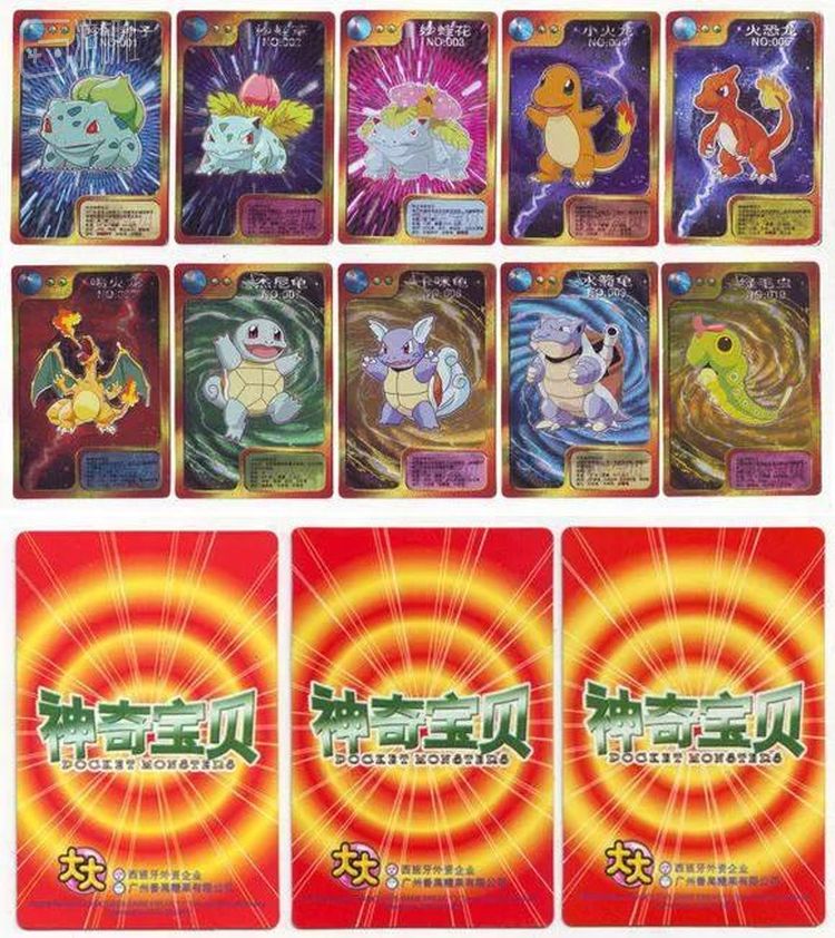 卡面上,盗版的“技”系列在每张贴纸上都标注了宝可梦的中文名称,而那个名称位置其实原本是图中宝可梦所用技能的名字。(大冬瓜版没有翻译,照搬的日版)