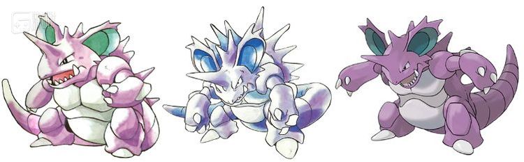 从左到右依次为:初版尼多王、第二版尼多王、CG尼多王