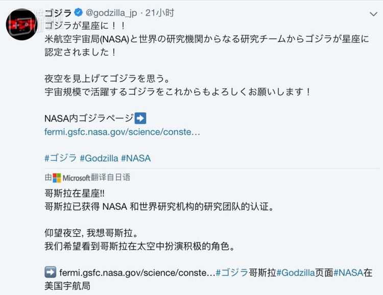 而“哥斯拉座”当选的另一个理由,其实也和NASA的项目有关:哥斯拉喷出的放射热线,正和宇宙中的“伽玛射线暴”现象很相似,而这一次命名星座的活动正是为了纪念NASA的“费米伽玛射线空间望远镜”(Fermi Gamma-ray Space Telescope,以下简称“费米望远镜”)升空服役10周年。