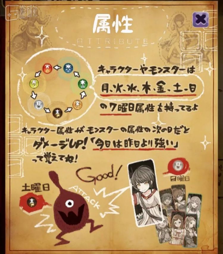 还有一个叫《WonderBlocks》的游戏,直接用星期一二三四五六七做属性,星期一克制星期二,以此类推。如此一来,也让“今天比昨天更强”这个宣传语显得非常有味道味道。