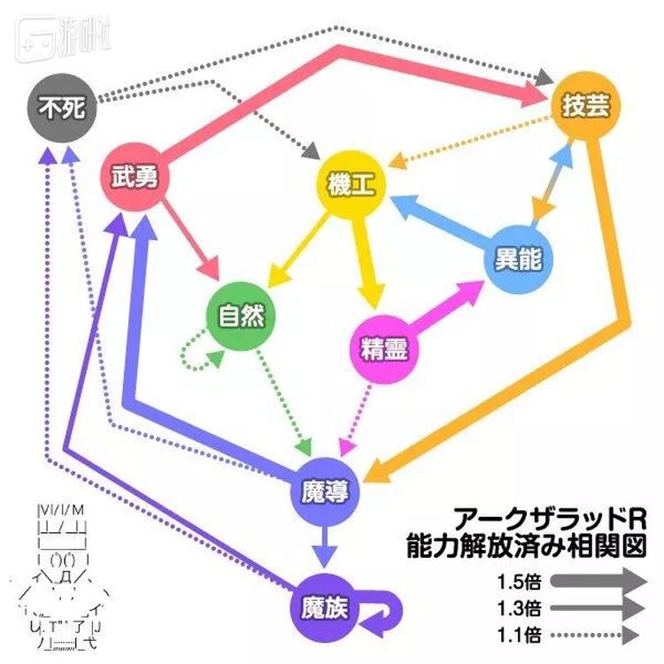 当然,也不是所有游戏设计属性关系的时候都能处理的这么巧妙,比如《亚克传承R》,这个属性关系用列表表示出来的确整整齐齐的:
