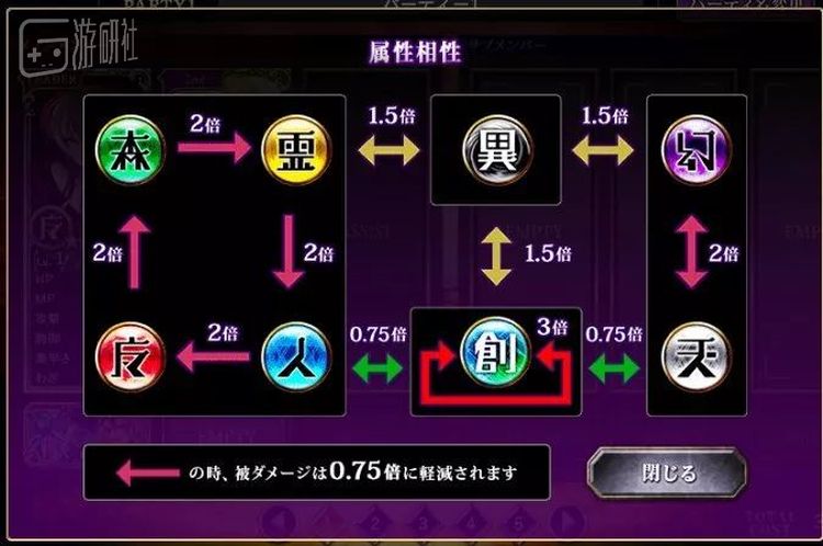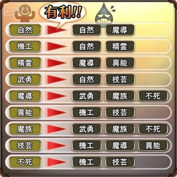 根据春的分析,像《智龙迷城》这种三点牵制、二者纠缠的属性关系,“水火木”这一组对所克制的属性伤害是两倍,对被克制的伤害减半,对另一组“光暗”的伤害没有变化;“光暗”这一组互相克制,对“水火木”的伤害没有变化。