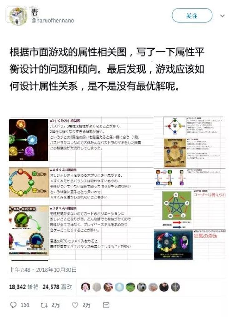 最近,一个名为“春”的游戏设计师就在推特上发起了对属性平衡设计的讨论,他对市面上常见的几种设计依次做了分析,但是并没有找到一个比较完美的答案。