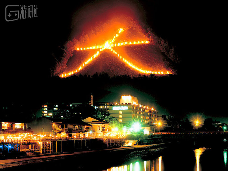 左大文字山,是京都每年夏季盂兰盆节的传统活动“五山送火”的场地之一,当盂兰盆节来临时,这座山上会点火,燃起巨大的“大字爆炎”(《精灵宝可梦》中亦有同名招式登场)。