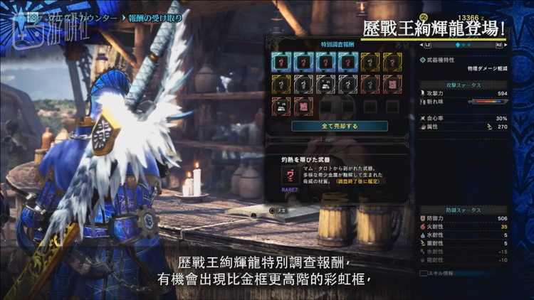 完成调查后,有概率出现比金框更高级的彩虹框,经过鉴定可出现更高级的奖励。此外,虽然普通绚辉龙不再登场,但玩家在们也不必担心,因为普通绚辉龙的所有掉落奖励均可以通过击杀历战王绚辉龙获得。