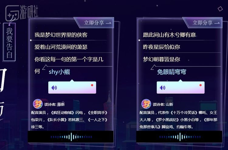 梦幻西游嘉年华的门票上印着“三行情书”,这些“情书”都是从梦幻西游线上的“为梦写诗”活动从玩家中征集的。抽奖券上的“三行诗”是以成对的方式发放的,玩家需要根据抽奖券上的三行诗,寻找相同诗句的玩家进行配对,配对成功才有机会抽取游戏内的神兽或其他限量奖励。