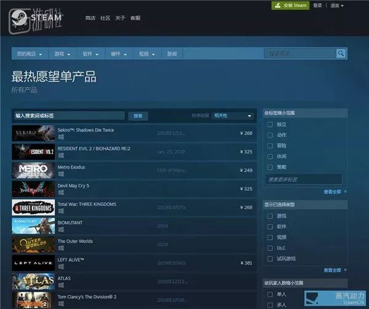 有《方舟》的成功经验在前,玩家们可以说很期待《ATLAS》。之前Steam刚推出“心愿单排行榜”,《ATLAS》在最热愿望单中位列第九,甚至比《全境封锁2》还要高。
