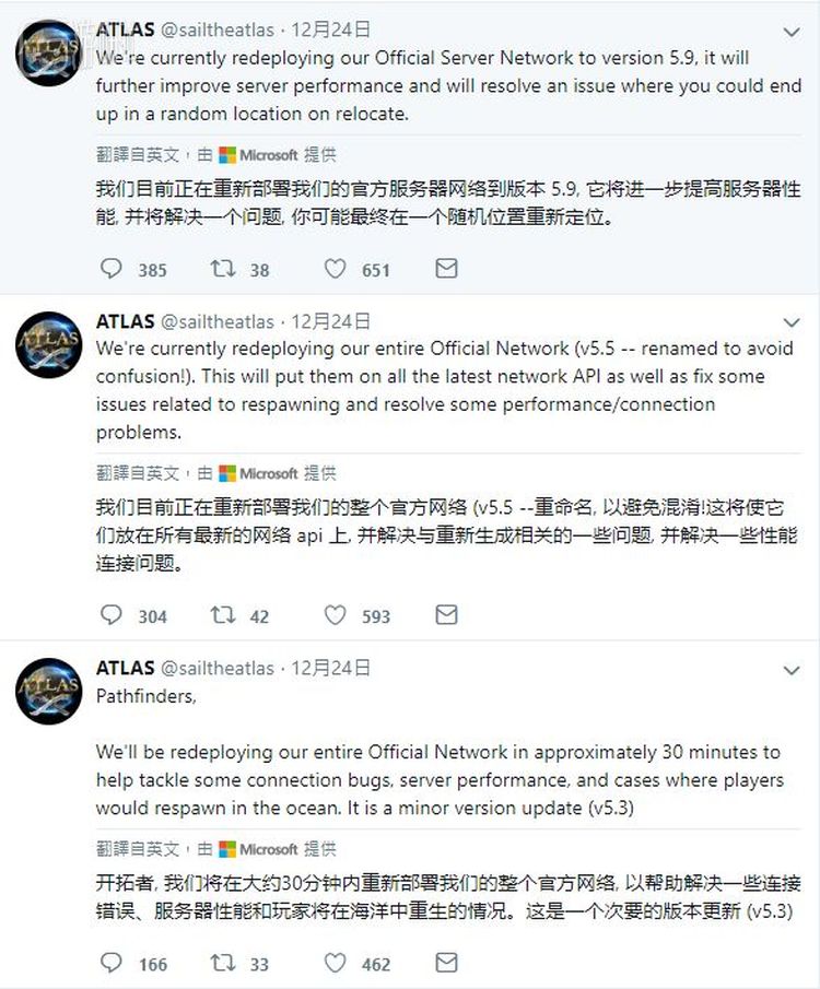 《ATLAS》的官推这段时间的发言也离不开这几件事:服务器、服务器,我们正在重新修复服务器。