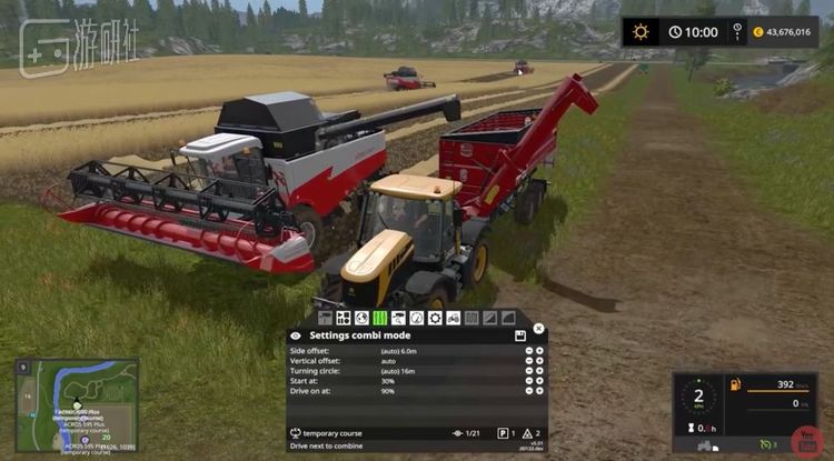 更厉害的还有各种复杂的自动AI系统。有一个叫做CoursePlay的著名Mod,理论上甚至可以实现农场的全自动操作,只要事先给AI规划好路线,游戏里的收割机就会自动收庄稼,而运输拖拉机也会自动把庄稼运到谷仓,全程都不需要玩家参与。