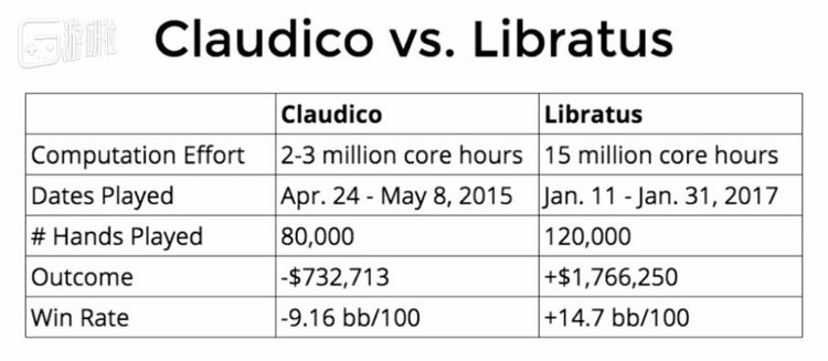 “冷扑”前身Claudico和“冷扑”的胜率对比