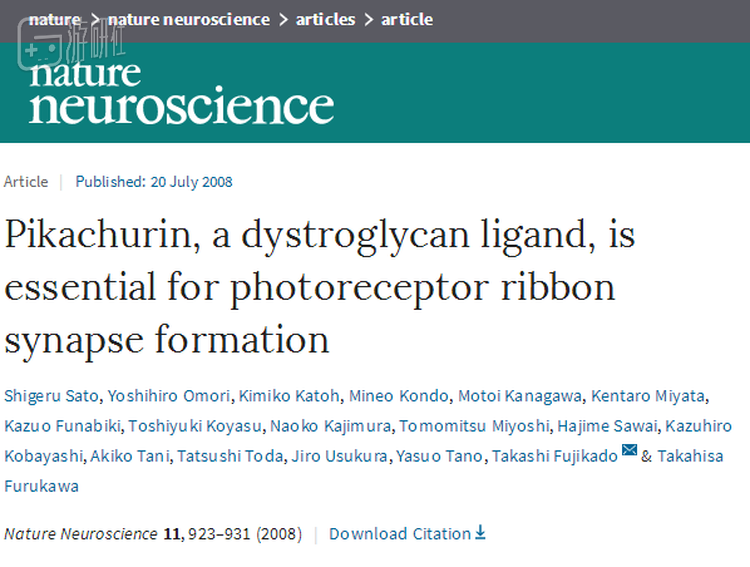 因为能够有效率加速光 → 电讯号的转换传递,所以研究团队决定把这个新发现的蛋白质定名为皮卡丘素 (Pikachurin),他们同样在《自然》杂志上发表了这一成果。