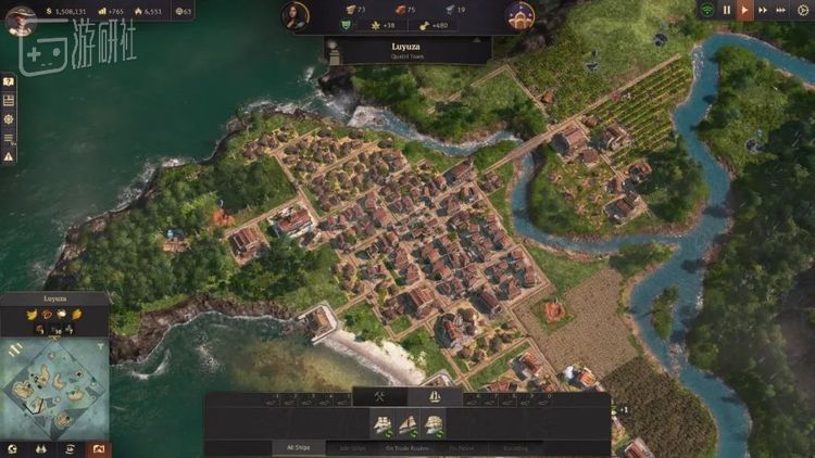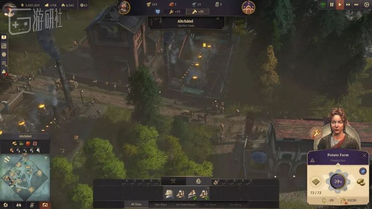 在这些天几十小时的试玩过程中,总体感觉上,游戏的难度是降低了,即使在城市建设类游戏最难维持资金正常运作的游戏初期——往往需要减缓甚至停下建造的脚步,以便能够累积资金——也无需担心钱的问题,只要跟着居民的需求正常发展,财政收入就会节节攀升。产业链的建造简单直观,点开目标建筑,需要的前置建筑就会显示出来,且能直接选取;集市、教堂、消防所等功能性建筑能覆盖的范围广得超乎你的想象(真是科技带动生产力啊),不用为预留未来的发展空间而绞尽脑汁;岛上的土地也不再是寸土寸金,还会有不少富余的土地用来打造美化带。