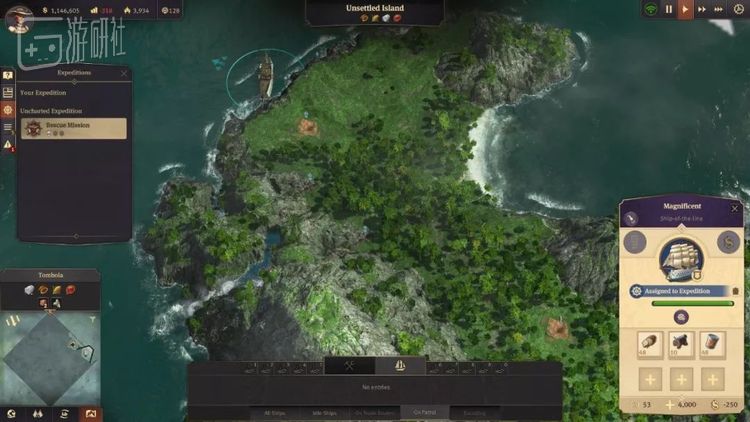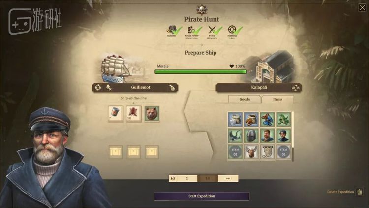 探险队可以说是《纪元1800》新增的核心内容了,除了能在游戏初期为你打开通往新世界的大门,还会作为你的寻宝工具贯穿游戏始终。玩家会不时收到探险目标,比如缉拿海盗、解救动物、考古等等。根据目标的不同,需要给船只配备武器、粮食、工具等物资,或是带上拥有外交、武力等特殊技能的船员。