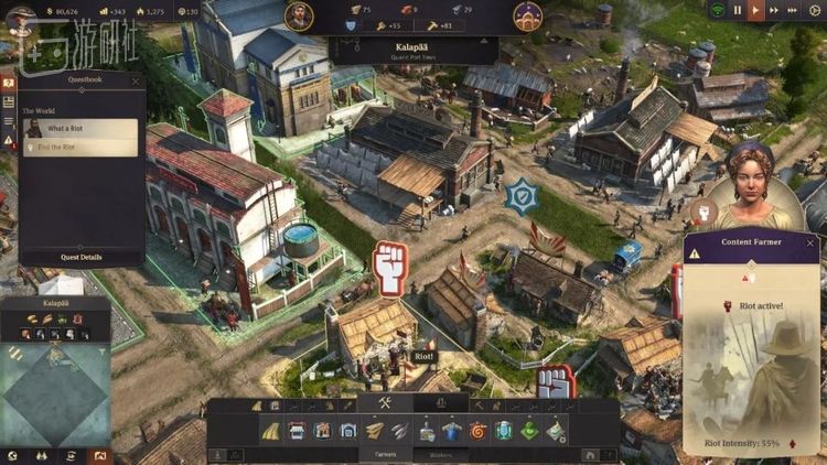工业革命时期的英国,整个社会都朝着工业化、民主化和城市化突飞猛进,这些也在游戏中如实展现了出来。居民不仅仅是为你干活的劳工,也不像中世纪那会只要有宗教信仰就能得到精神满足。《纪元1800》新增了“快乐值”的设定来体现居民多元化的精神需求。他们会从报纸里了解时事新闻,如果听到哪里的田地厂量不足了,哪里的工厂又失火了,财政入不敷出等负面新闻就会不高兴,不高兴久了就会起义。虽然能通过建立警察局来镇压,但毕竟不是长久之计,最好的方式还是能让他们安居乐业。