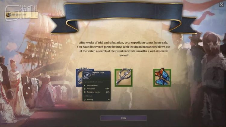 探险成功后可获得丰厚的奖励,比如能为你的狩猎业增加35%产能,同时还能减少25%劳动力的陷阱,如果给探险船只装备上,就能为船员增加30点狩猎技能,可以说是极品了